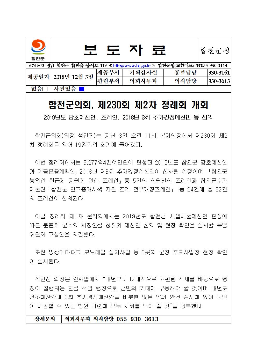 | 제목 | 합천군의회, 제230회 제2차 정례회 개회 | ||||