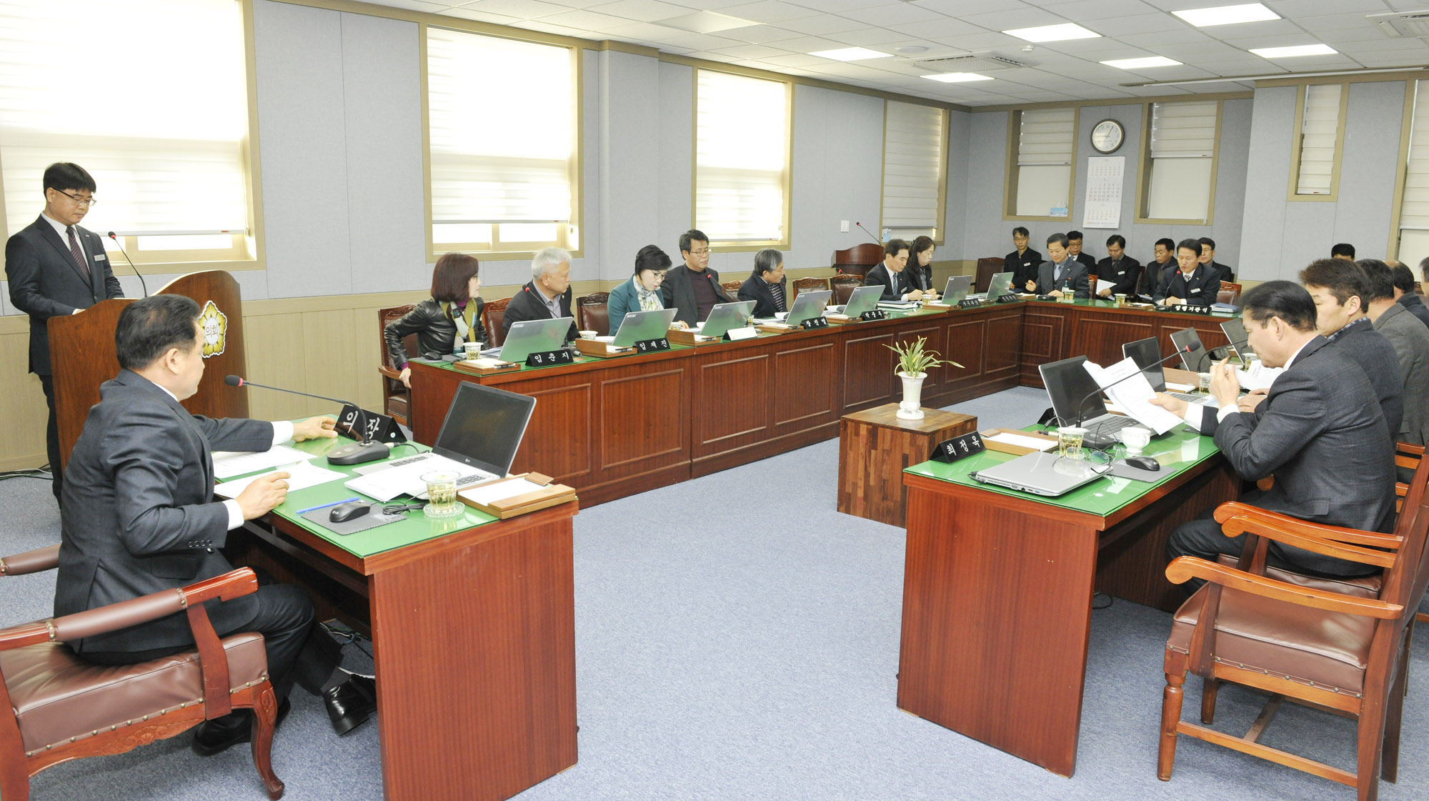 합천군의회 오염총량관리 군 대책 청취 1월 두 번째 의원정례간담회 개최 합천군의회(의장 석만진)는 22일 오전 9시 의원간담회실에서 군 실국장과 관련 담당부서장이 참석한 가운데 1월 두 번째 정례간담회를 개최하고 군의 담당 실과로부터 「오염총량관리 할당부하량 초과에 따른 대책」등 군정 현안에 대한 부서 보고를 청취했다. 의원들은 질의 답변을 통해 의문을 해소하는 한편, 축산웅군인 우리 합천군의 기본소득산업이자 근간을 이루는 농축산업분야가 축산환경의 현대화를 확대하고 안정적으로 발전해 나가는데 애로가 없도록 균형있는 군 정책 수립을 요구했다. 석만진의장은 인사말에서 ‘동절기 농작물 피해 및 산불예방에 각별한 관심 가져주시고, 현재 진행되고 있는 「군민과의 대화」에서 수렴된 민의가 군정에 적극 반영되어 군민이 체감할 수 있는 지역경제 활성화가 이루어지기를 바란다’고 당부했다. |
