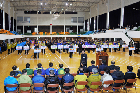 | 3월 16일 거창군 소재 스포츠파크에 17개 시군의회 의원과 자치단체장들이 참석한 가운데 기초선거구 정당공천제도 개선, 지방재정 확충방안 강구를 촉구하며 결의대회를 열고 체육행사를 통해 공동의 의지를 결집하였다. | |||||